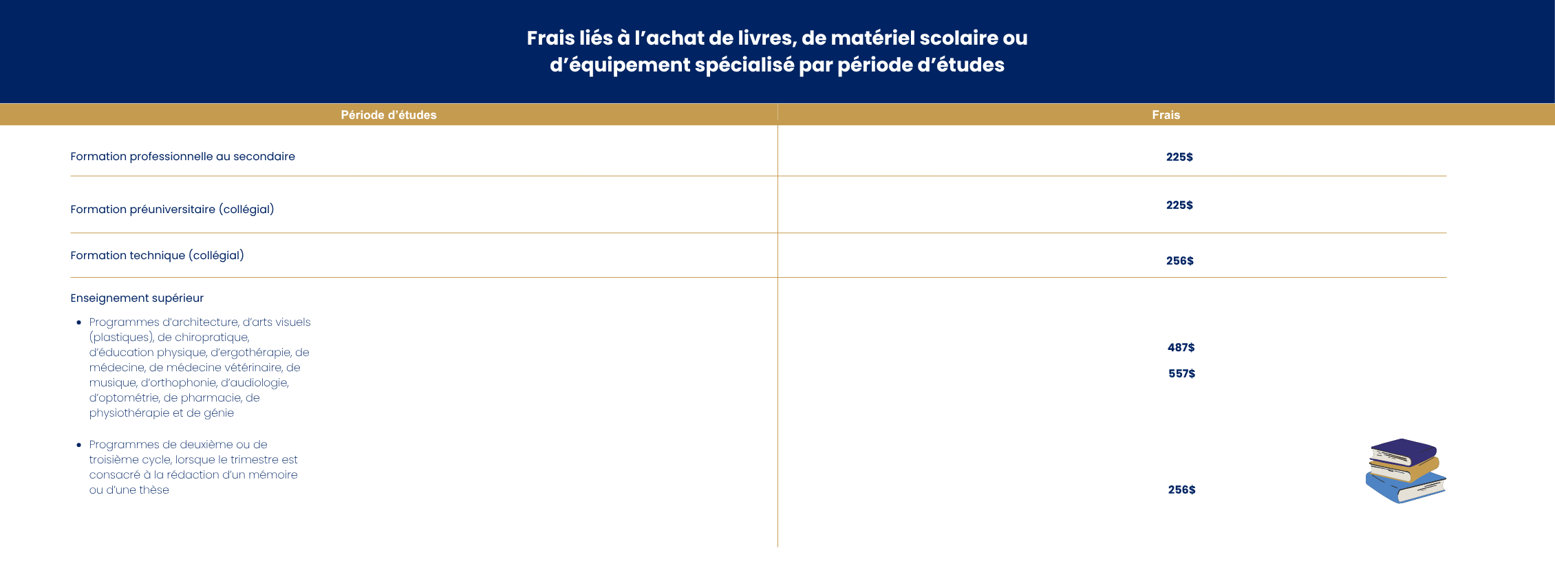 - Vous pouvez demander jusqu'à 88 $ par mois pour les études, avec un maximum de 707 $ par an.
