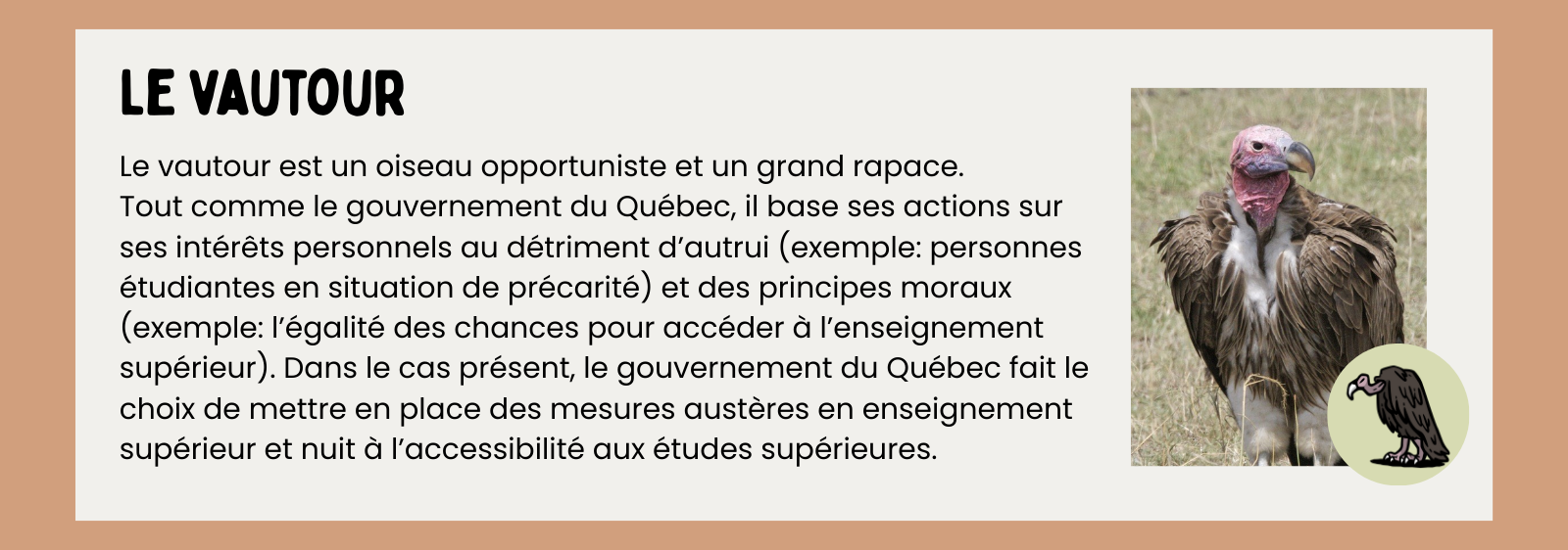 Juin 2025 : Le ministère de l’Enseignement supérieur coupe le programme Travail-études. Encore une fois, le ministère omet de consulter son comité qui se penche sur l’accessibilité aux études supérieures. Il coupe 3 millions de dollars d’un programme venant en aide aux personnes étudiantes en situation de précarité financière.